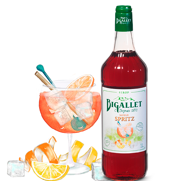 Fabriqué à partir d’une infusion « maison » d’orange amère, le sirop saveur Spritz Bigallet restitue fidèlement l’amertume élégante et fruitée du célèbre cocktail italien. Équilibré et rafraîchissant, il associe les notes aromatiques de gentiane, de mandarine et d’orange amère, pour un goût authentique et raffiné. Citron et pamplemousse complètent les notes d’agrumes de notre sirop. Il est idéal pour réaliser un Spritz sans alcool.